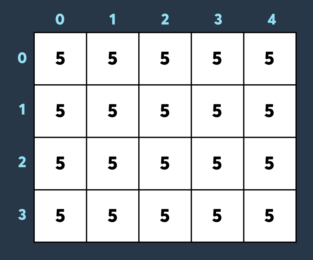 예를 들어, 아래 사진은 크기가 4 x 5인 맵에 내구도가 5인 건물들이 있는 상태입니다.