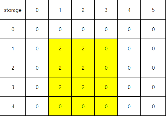 두 번째로 적이 맵의 (2,0)부터 (2,3)까지 공격하여 2만큼 건물의 내구도를 낮추면 아래와 같이 4개의 건물이 파괴되는 상태가 됩니다.