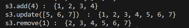 print('s3.update([5, 6, 7]) : ', s3)