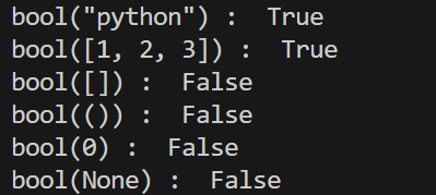 print('bool("python") : ', bool("python"))