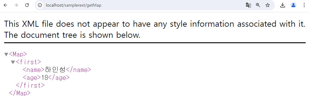 알고보니 이 부분이 문제였다. xml로 실행하면 다음과 같은 구조로 데이터가 출력된다.