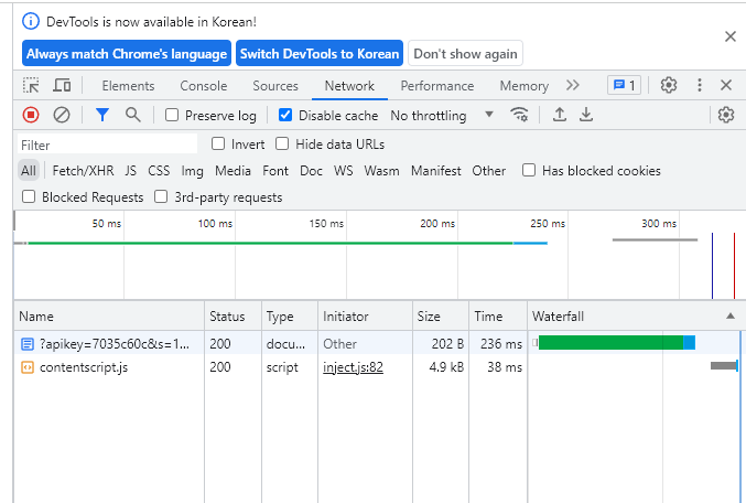 network를 살펴보면 내가 사용한 key가 그대로 드러남을 알 수 있다.. 😭