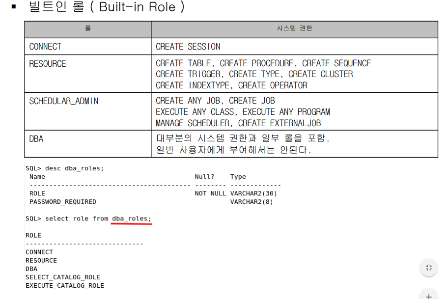 : 롤은 시스템 권한과 객체 권한으로 구성될 수 있다.