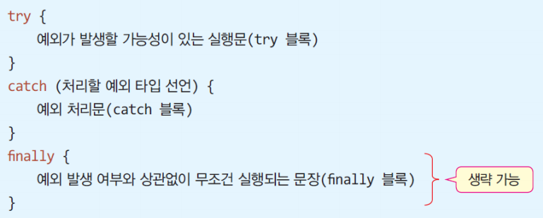 예외 발생 여부에 상관 없이 실행되는 finally 블록은 생략 가능하다.