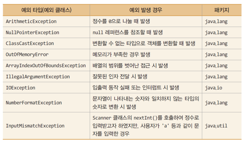 대표적인 예외 발생 사례는 정수를 0으로 나누는 경우, 인덱스 범위를 넘어가는 경우 등이 있다.