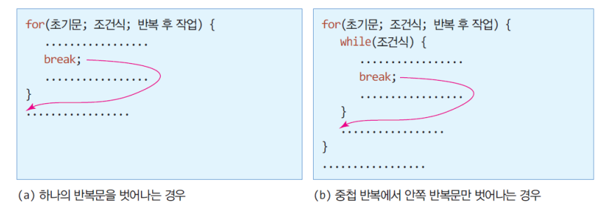 ❗하나의 반복문에서만 빠져나옴. 조건문을 빠져나오지 않음을 주의