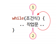 while문은 반복 횟수가 정해져있지 않고 조건 내에서 반복하는 경우 사용된다. while문은 조건식이 비워져있으면 오류가 발생한다. while문을 빠져나올 수 있도록 조건식에 사용될 변수를 초기화하고, 반복을 거듭한 후 false가 될 수 있도록 작성해야 한다.
