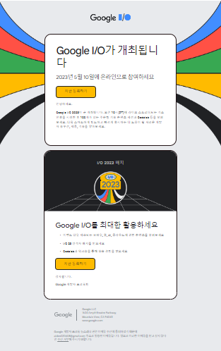 구글로부터 메일을 통해 구글 I/O 2023의 등록이 시작되었다는 뉴스레터를 받았습니다.