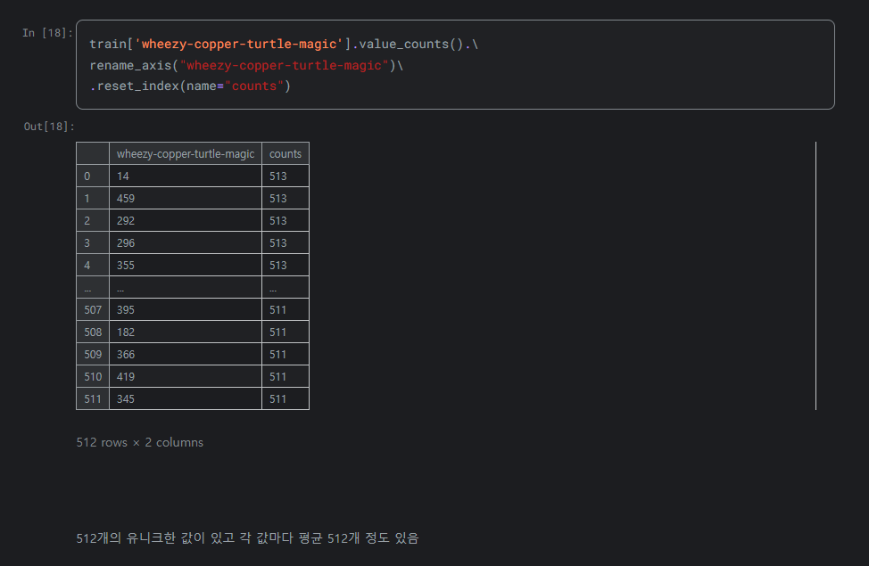 매직거북이(wheezy-copper-turtle-magic)는 범주형 변수일 확률이 높음