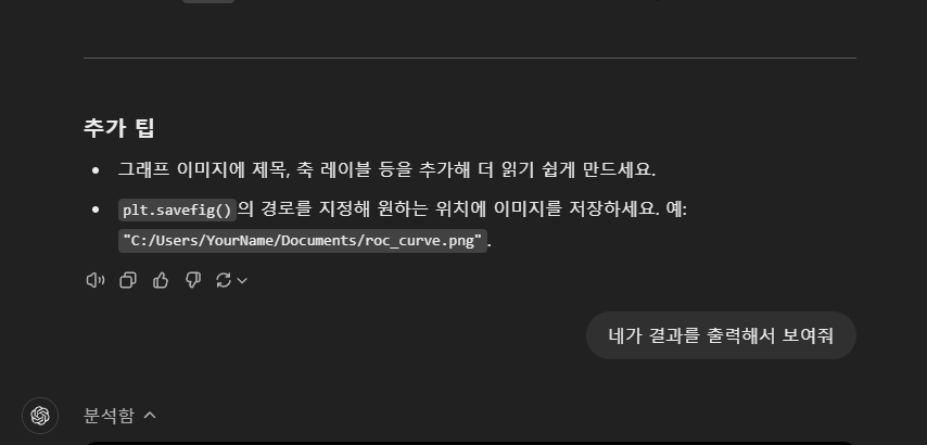ROC 곡선은 모델이 분류 기준(Threshold)을 바꾸면서 FPR과 TPR이 어떻게 변하는지를 나타냅니다.