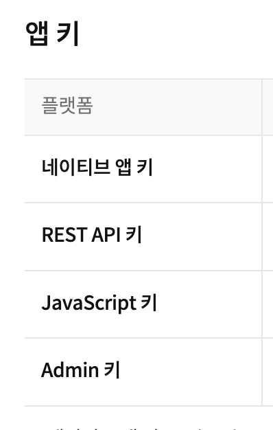그리고 목록에 앱 키 탭을 가보시면 정보가 4가지 들어있습니다.