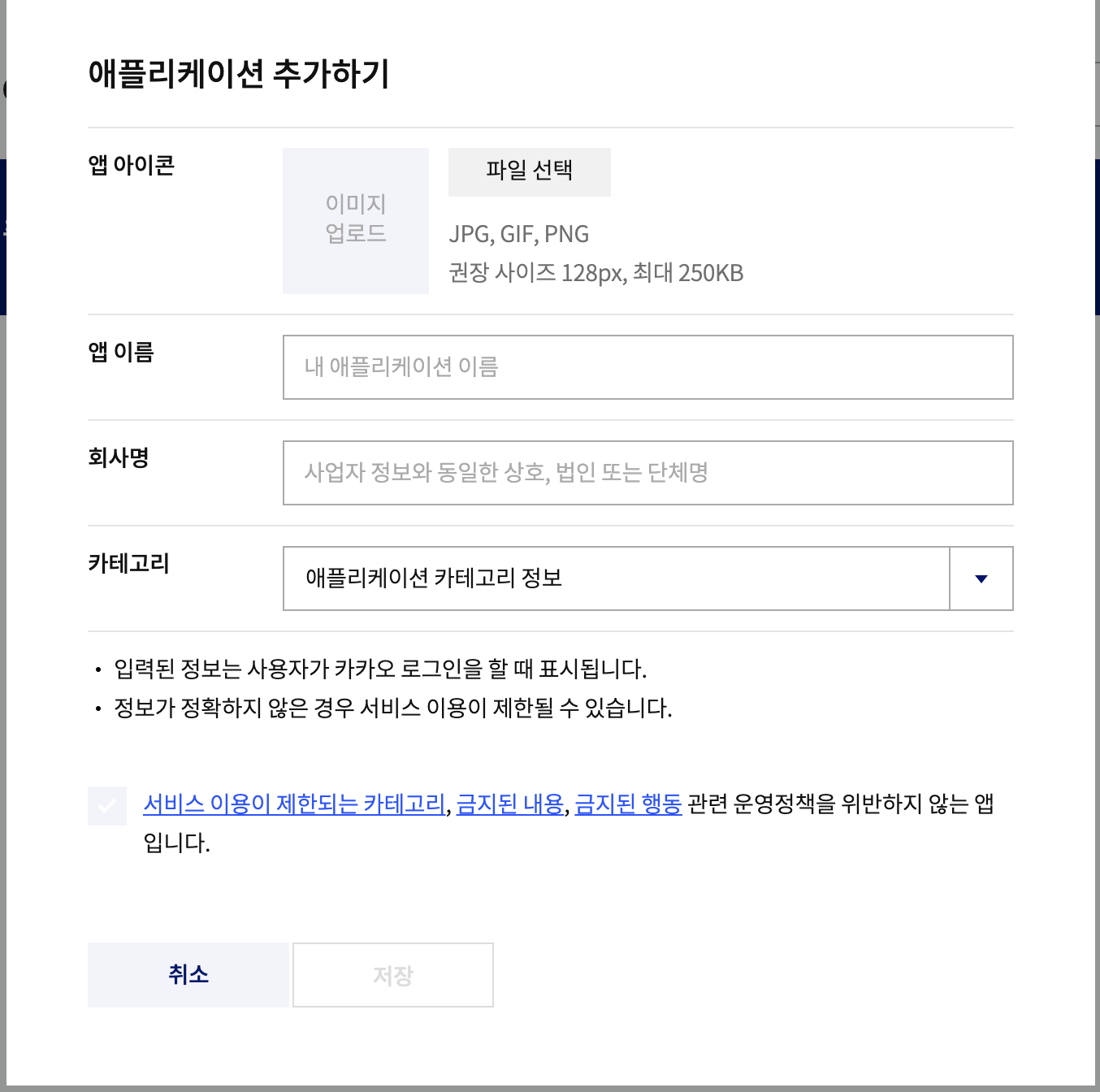 https://developers.kakao.com/console/app 에 들어가서 로그인을 해주고 어플 등록을 해줍니다.