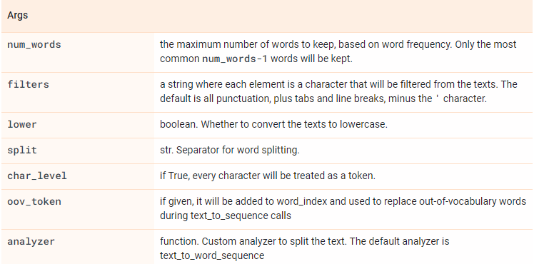 https://www.tensorflow.org/api_docs/python/tf/keras/preprocessing/text/Tokenizer