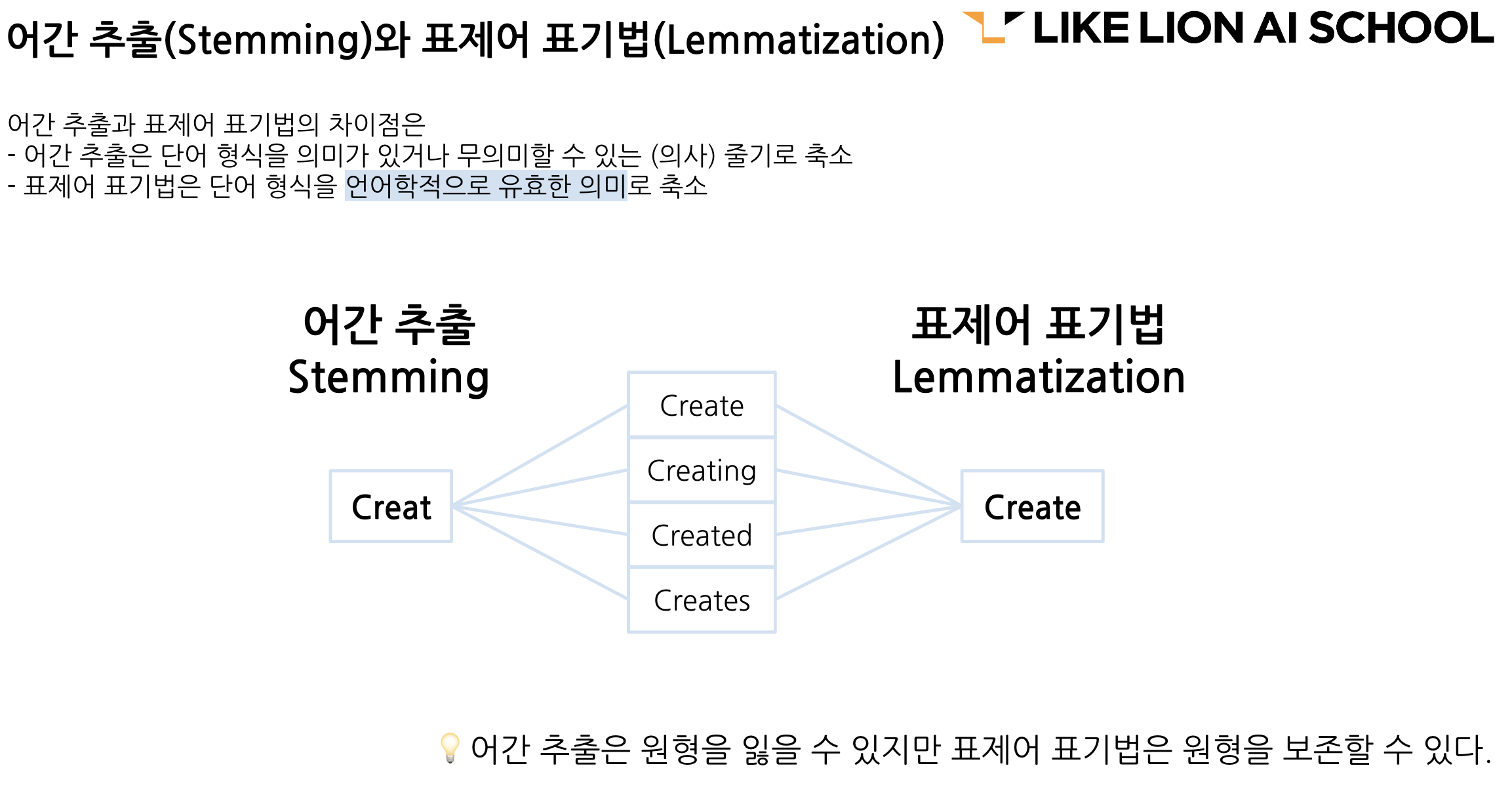 문자열 전처리를 정규화 한다고 표현하기도 한다.