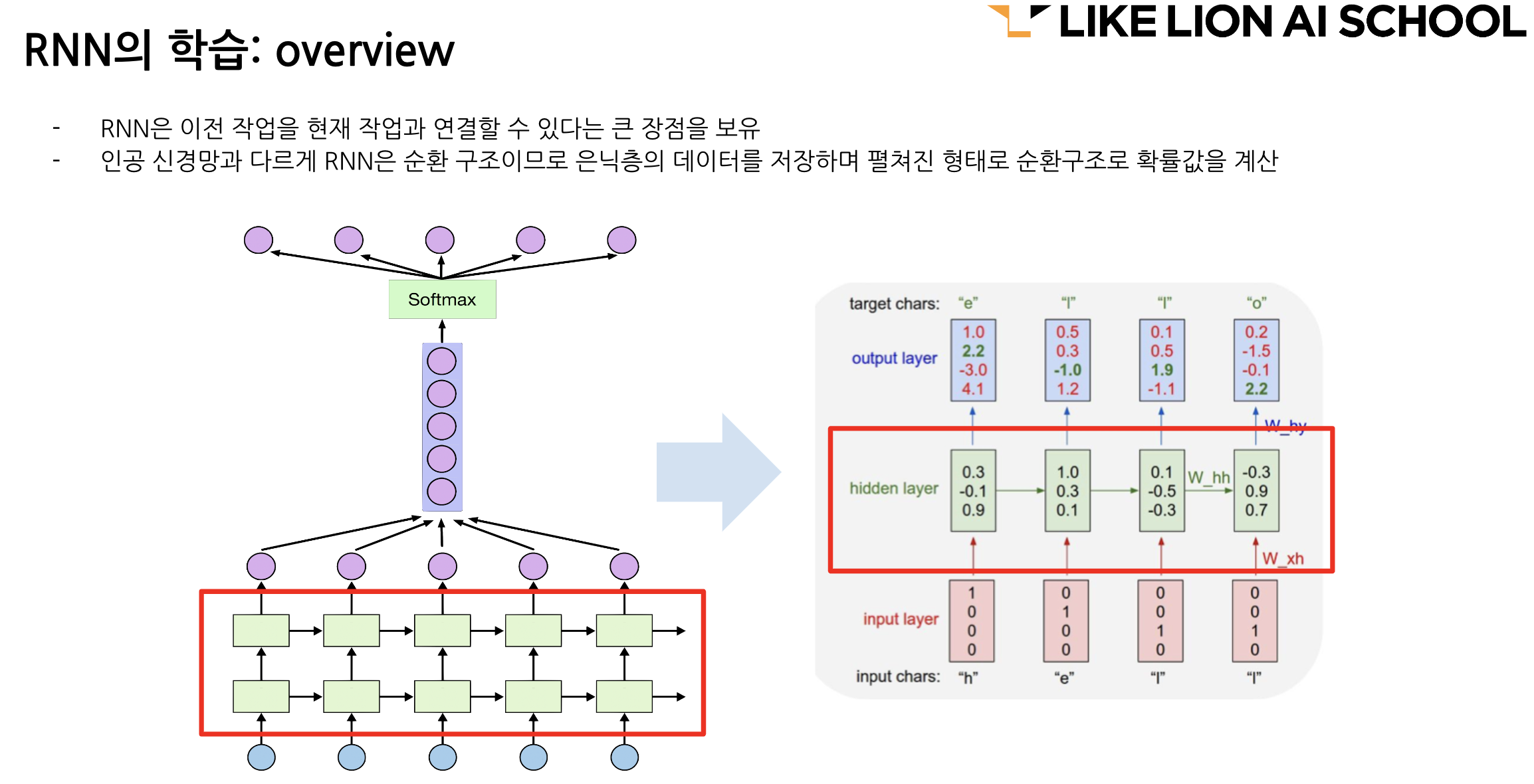 기존 신경망과의 차이 : 결과값을 출력층 방향으로도 보내면서, 다시 은닉층 노드의 다음 계산의 입력으로 보내는 특징.