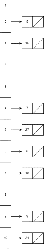 - i=0, h(16,0)=16mod11=5