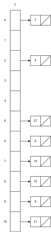 - i=0, h(27,0)=27mod11=5