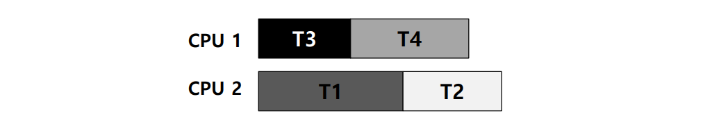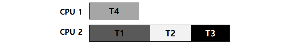 물론, 이 경우 CPU 1과 CPU 2에 작업이 균등하게 분배되지 않았으므로, 병목 현상이 발생하게 된다. 이를 해결하기 위한 방법으로 Banker's Algorithm이라는 알고리즘이 있는데, 해당 글에서 다루지는 않겠다!
