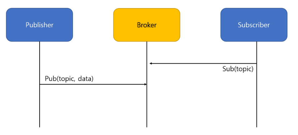- broker: 메세지를 publisher에서 받아와 subscriber에게 전달하는 역할