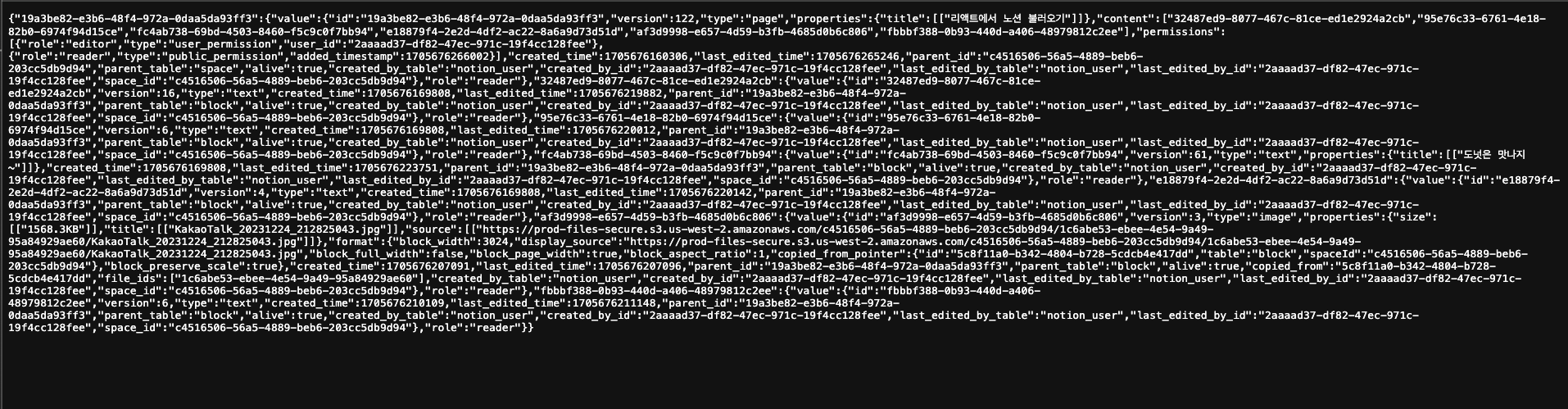 json 파일로 저장해서 보여주기주소창에 https://notion-api.splitbee.io/v1/page/${id 값} 을 입력합니다.