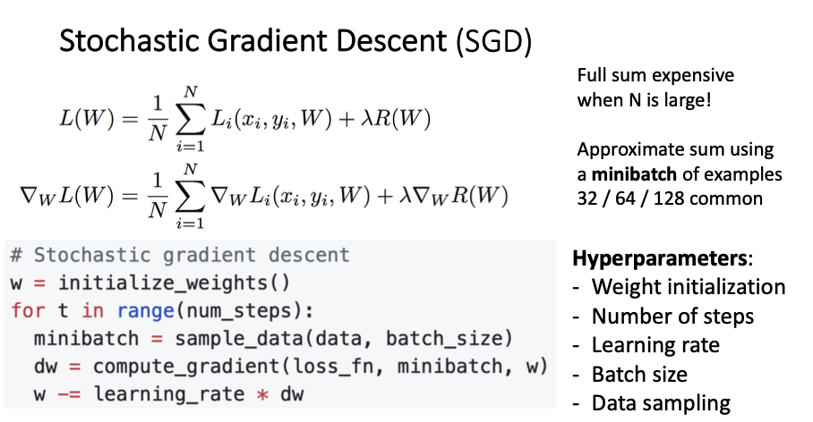 Loss Function의 값을 최소로 만드는 weight을 찾는과정