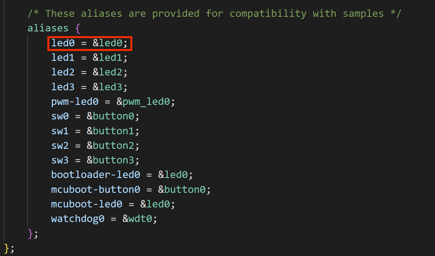 이는 LED 노드가 있는 모든 보드가 LED에 대해 일정한 별칭을 갖도록 하기 위한 것입니다.