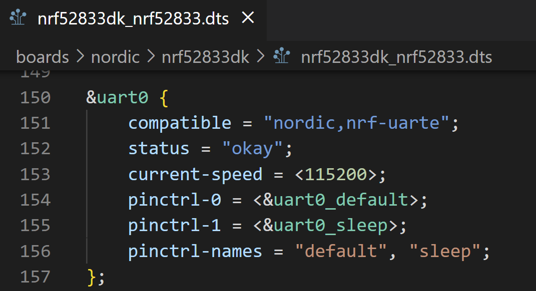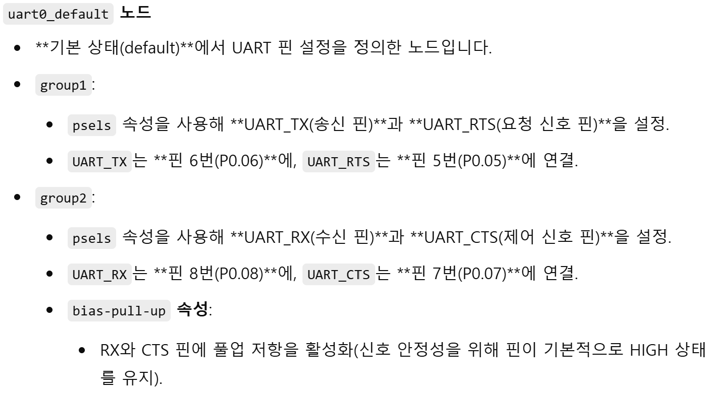 이 노드는 Nordic의 UART 하드웨어를 사용함을 나타냄.