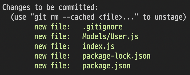 git add .를 하게되면 Untracked files에서 Changes to be commited으로 바뀌면서 글씨도 녹색으로 바뀌게 된다.