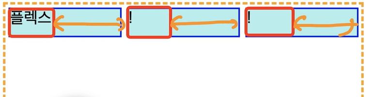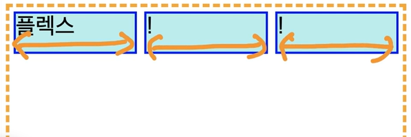 -> 주황색 영역이 grow : 1 해서 1:1:1로 지정될것이다 , 빨간색 영역이 flex-basis : 100px 지정해준 부분이다