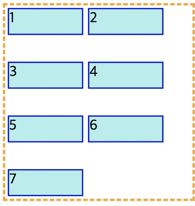 -> item 들이 자신의 width 을 유지하기 때문에 나열이 container 의 너비보다 커지면 다음 줄로 넘어간다