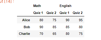 ('English', 'Quiz 2'): [95, 80, 75]