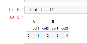 바뀐 값이다. col1이 인덱스로 들어가게 되며 각 컬럼에 알맞는 값으로 들어가게 되었다.