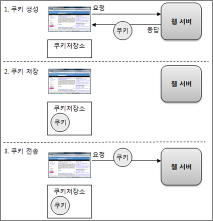 웹 서버가 클라이언트의 웹 브라우저에 저장하는 작은 데이터 조각