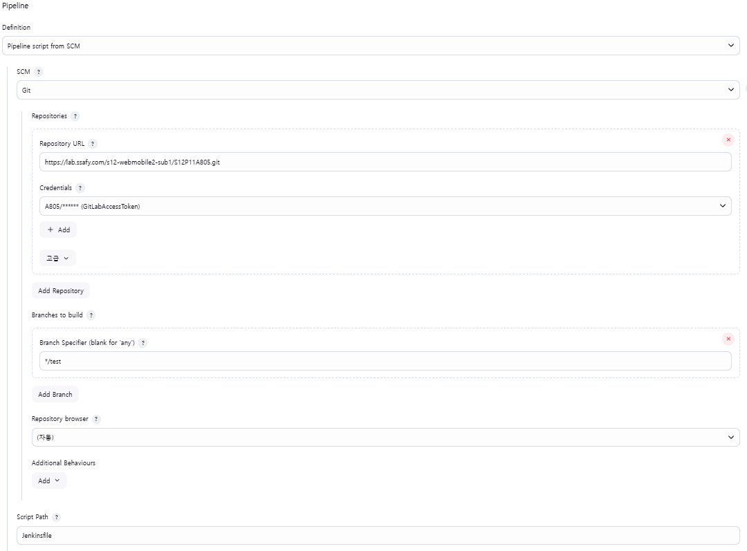 파이프라인(Jenkinsfile) :