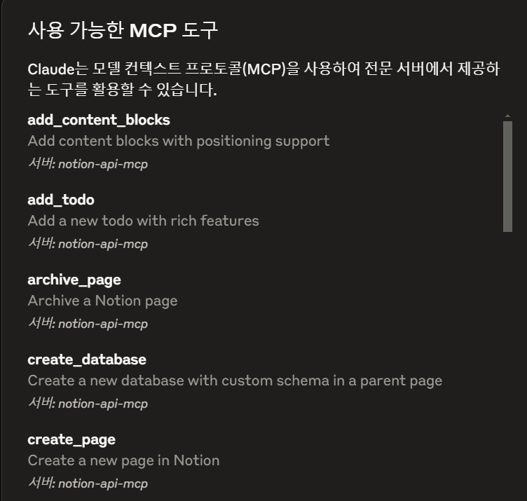 Google 캘린더에 Claude의 명령어로 간단하게 일정을 등록하는 영상을 본 후, MCP(Machine Callable Programs)에 대한 궁금증이 생겨 Notion과 함께 연동해보고자 했습니다.