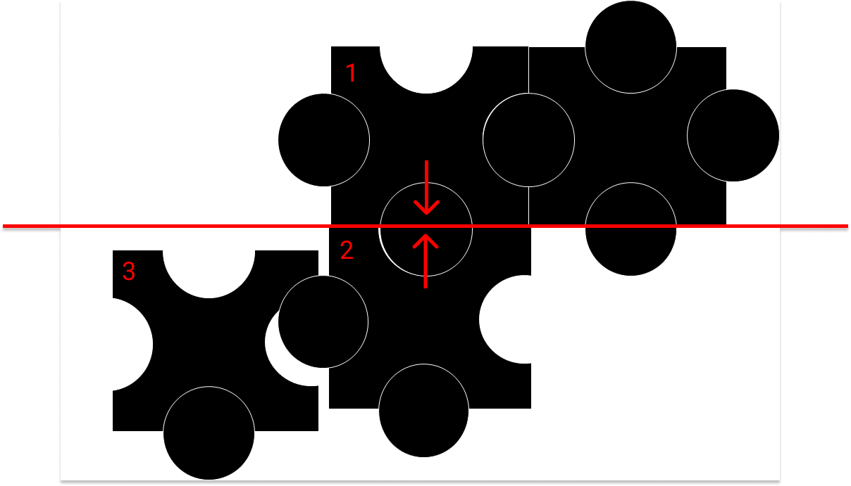 위의 경우 상-하 퍼즐을 맞출 때, y축 이동과 x축 이동을 고려해야 퍼즐이 육안으로 보기에 정확히 맞춰진다. 위의 퍼즐을 기준으로 보았을 때 아래 퍼즐의 y가 오른쪽으로 이동해야 한다. 상하 퍼즐끼리 맞출때 y축, x축 이동을 구현한 함수를 yUp, xUp이라 했다.
