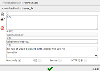 chrome 웹스토어에서 설치한 EditThisCookie를 페이지 상단 오른쪽에서 쿠키 표시를 찾아 클릭해 실행시켜주면, 값이 1 로 설정되어있는 걸 확인할 수 있다.