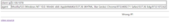 첫 화면에서 client ip 값이 5.138.1078 이고 ip 값이 틀렸다는 걸 알 수 있다.