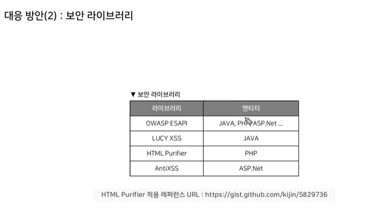다른 취약점보다는 까다로운 편. sql injection 같은 경우, 문자형 같은 경우에는 싱클쿼터에 대한 검증, 숫자형 같은 경우 숫자에 대한 검증만 하면 되지만 xxs 같은 경우 html을 사용을 해야하는 경우 굉장히 까다롭다. 어쩔 수 없이 html 태그를 사용해야 하는 경우.. 게시판의 내용이 예시가 있다. -> 보안을 고려하자니 서비스가 떨어지고 서비스를 고려하자니 보안이 떨어져 까다로운게 cross site scripting