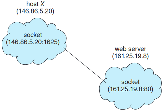 모든 통신은 고유함. 호스트 X의 다른 프로세스가 동일 웹 서버랑 통신하려면 또 다른 포트 번호 할당해야 함.