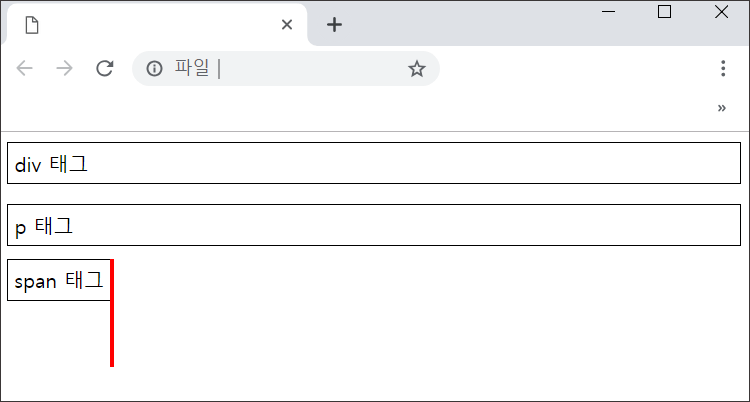 -> 위의 CSS로 <span> 은 <p> 태그와 똑같은 성질을 갖게 되었다.