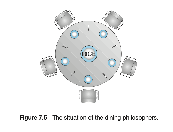 semaphore fork[5]=(1,1,1,1,1);