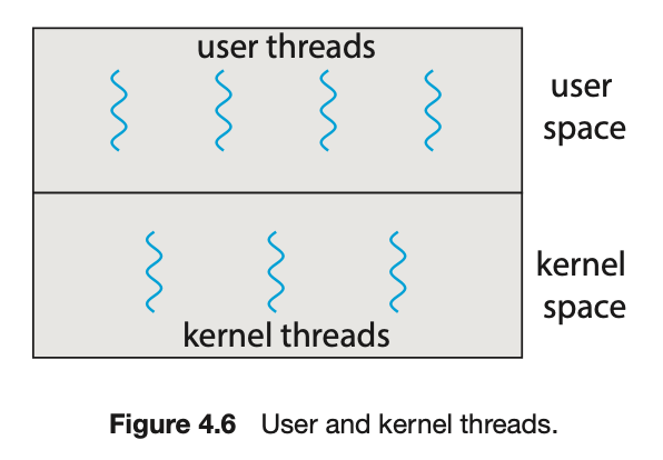 - 유저 스레드(User Thread): 유저 레벨의 스레드 라이브러리를 이용