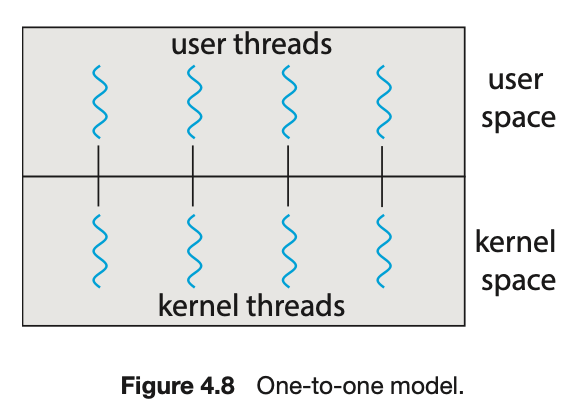 - 유저 스레드 하나 만들면 커널 스레드도 하나 생성