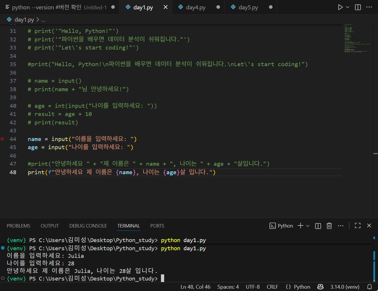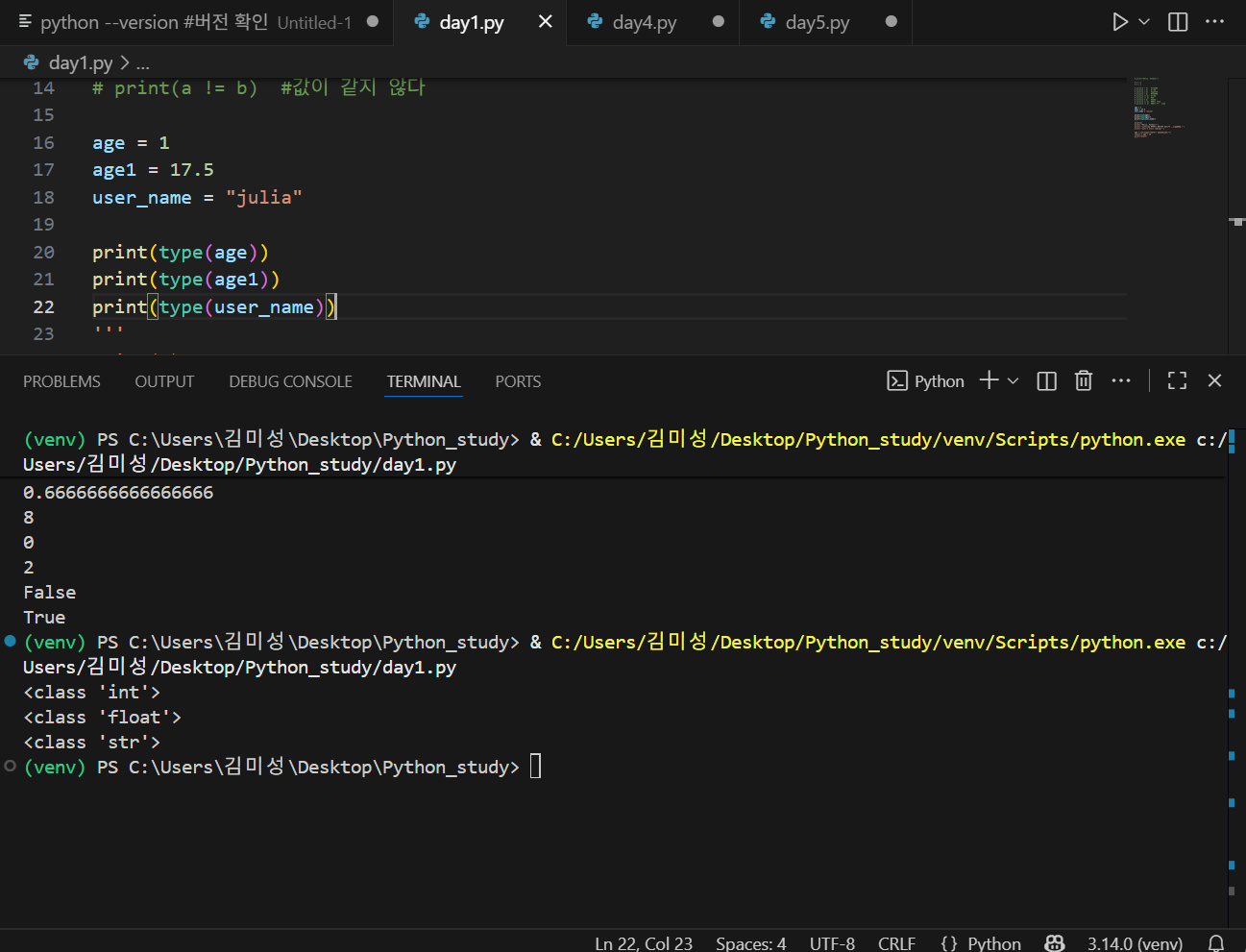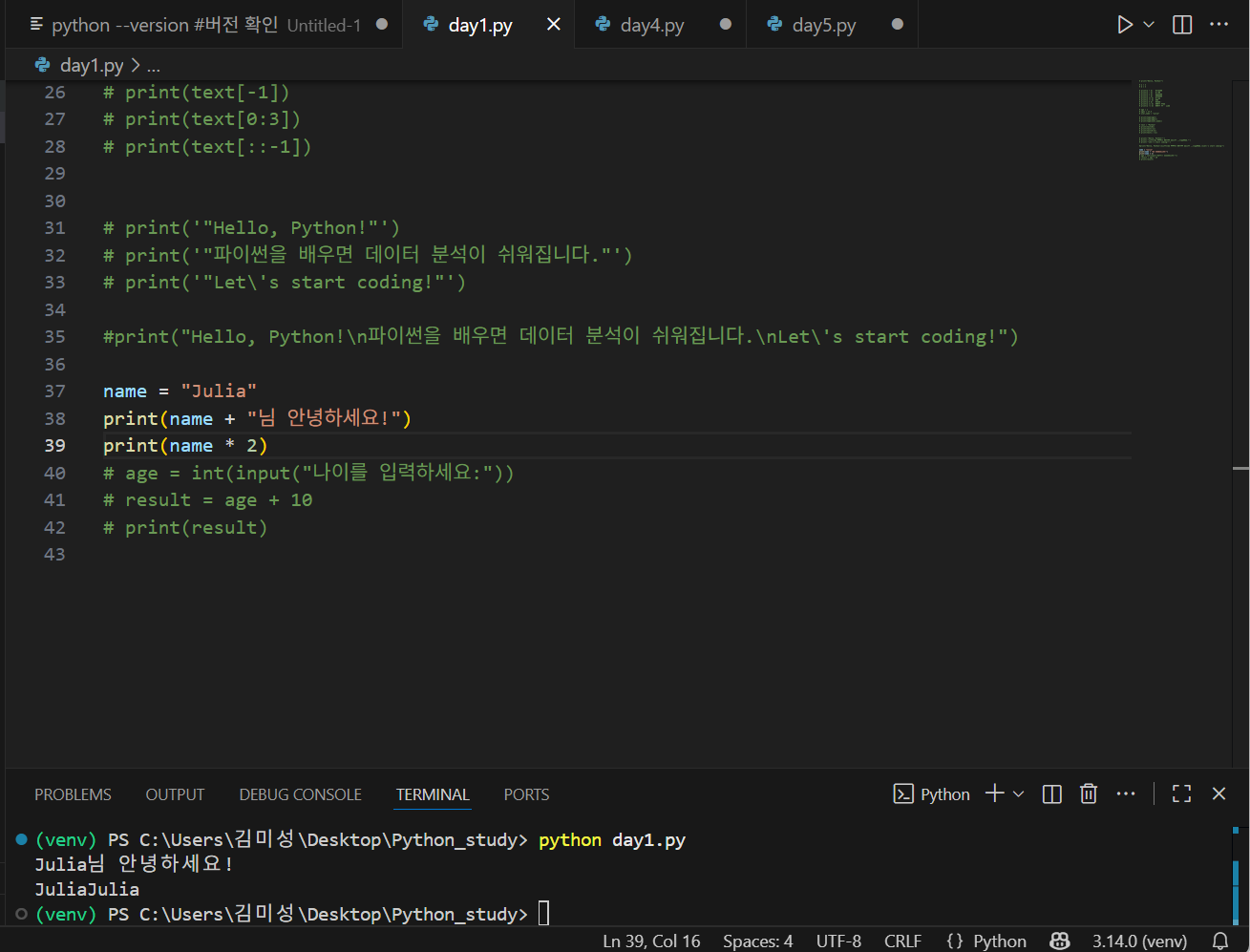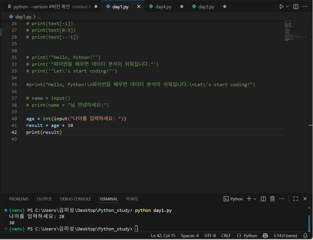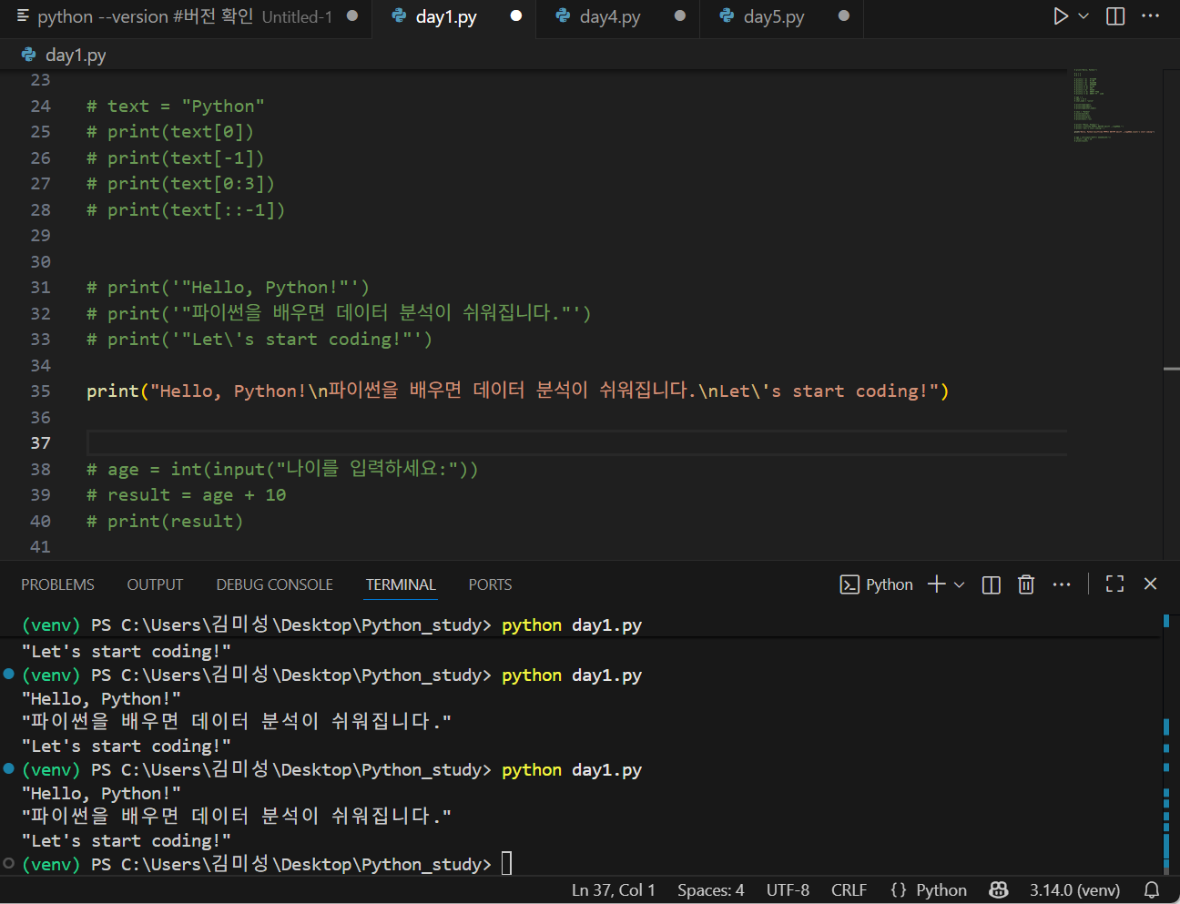 (venv) PS C:\Users\김미성\Desktop\Python_study> & C:/Users/김미성/Desktop/Python_study/venv/Scripts/python.exe