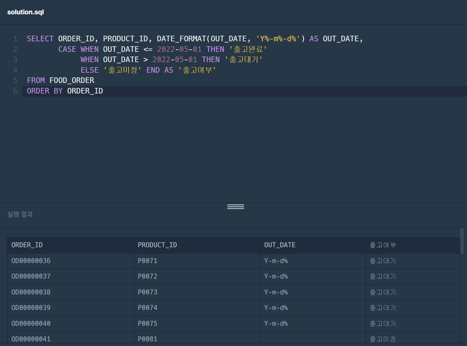 CASE WHEN OUT_DATE <= 2022-05-01 THEN '출고완료'