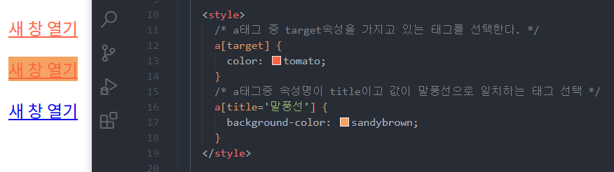 속성 선택자를 사용하면 특정 속성을 가진 html태그를 선택할 수 있다.