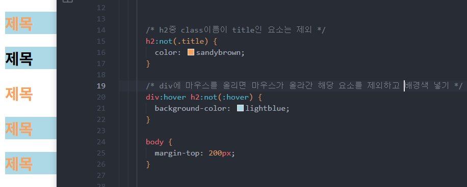 부정 선택자는 선택된 태그 중 제외하고 싶은 태그가 있을 경우 사용한다.