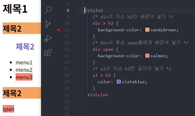 형태 구조 선택자는 부모태그안에 자식태그들이 각각 다른 태그로