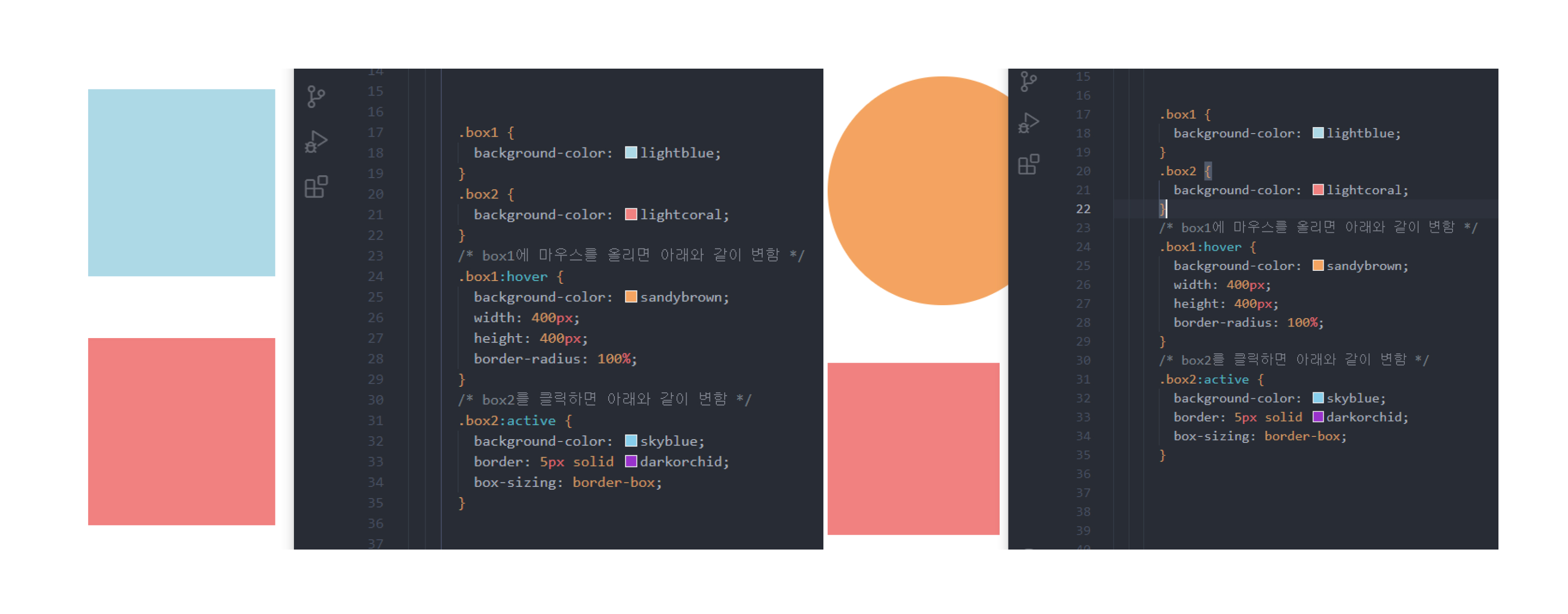 반응 선택자는 사용자에 행동에 따라 반응하여 css디자인을 바꿀때